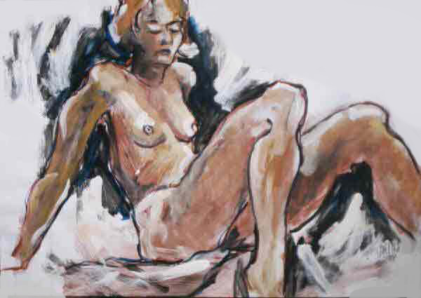 Den Schwerpunkt, in dem ausschließlich figurativen Schaffen Will Harts, bildet seine von erotischer Energie und Spannung aufgeladene Aktmalerei. Er bedient sich dabei unterschiedlicher Maltechniken, mischt Acryl-, Aquarell-, Kreide-, und Ölfarben und Bleistift, mal stark pastos im Farbauftrag, dann wieder aquarellig lasierend, oder in monochrom pastelliger Farbigkeit. Vor allem in seinen großformatigen Arbeiten, die in kurzen ca. dreißigminütigen Sitzungen nach Modellen entstanden sind, wird der skizzenhaffte spontane Charakter seiner Arbeitsweise augenfällig. In fetischistischer Manier werden Extremitäten des Körpers in den Vordergrund gesetzt, andere wiederum müssen unproportional stark zurücktreten.. |